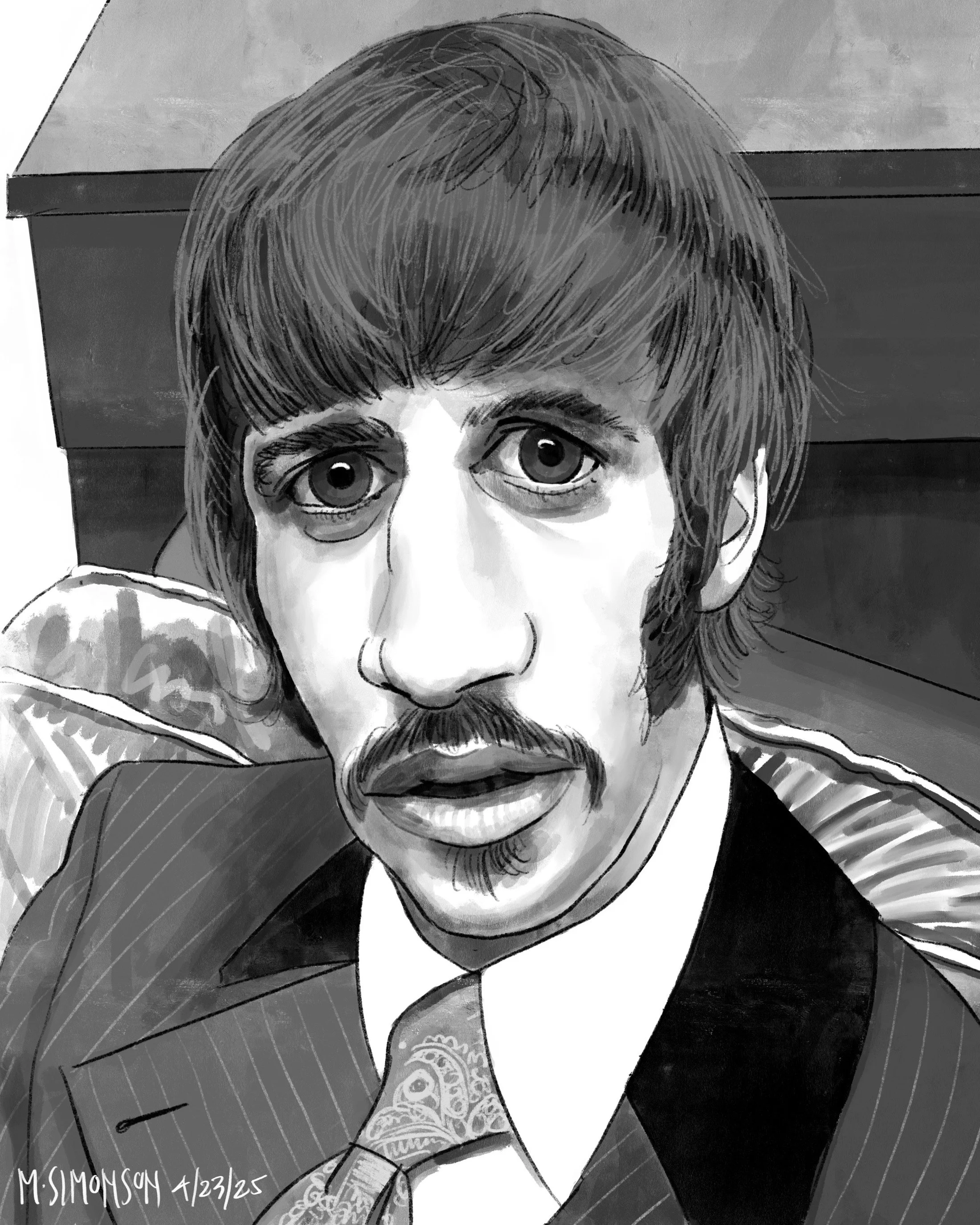 Ringo Starr. Drawn on 4/23/25 in Procreate on a 13" iPad Pro.